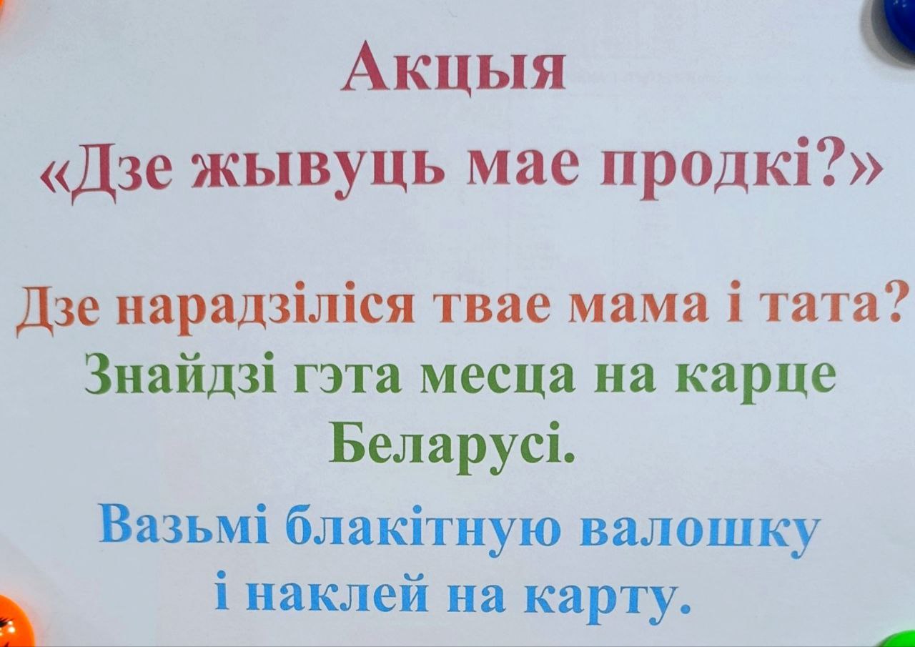 В нашей школе стартовала увлекательная акция под названием "Дзе жывуць мае продкi?", которая поможет ребятам лучше узнать свои корни и историю своей семьи. Участникам предстоит узнать, где родились их родители и найти эти места на карте Беларуси.