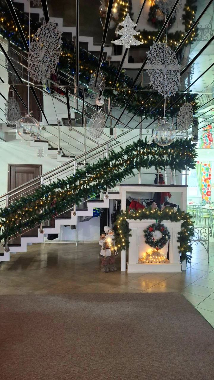 Стены холла теперь украшены сверкающими гирляндами, пушистыми еловыми ветками и яркими новогодними шарами. Каждый уголок наполнен духом приближающегося праздника, создавая ощущение уюта и радости. Дети с восторгом рассматривают украшения, а взрослые с улыбкой вспоминают свои школьные годы.