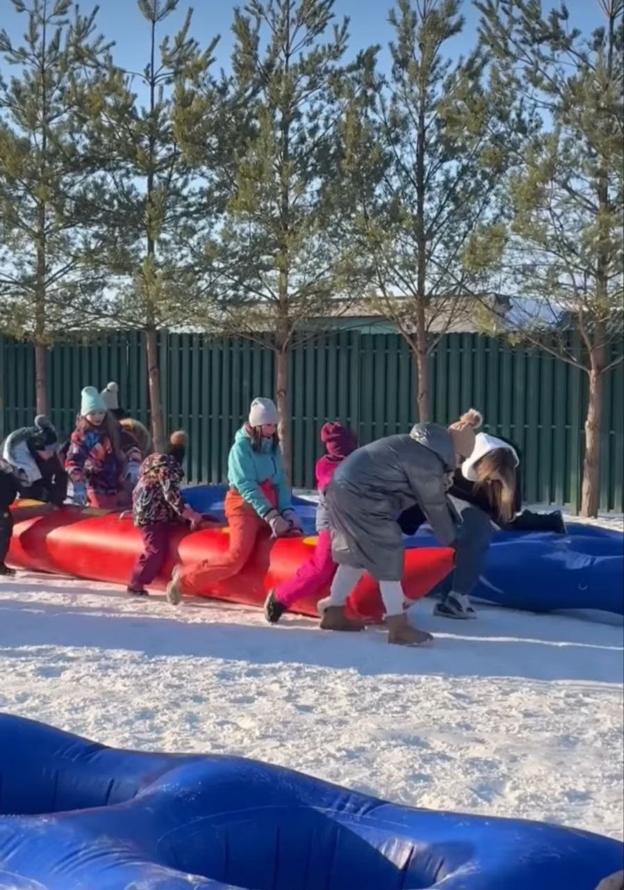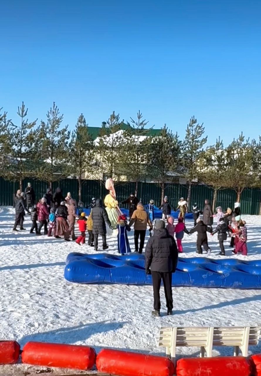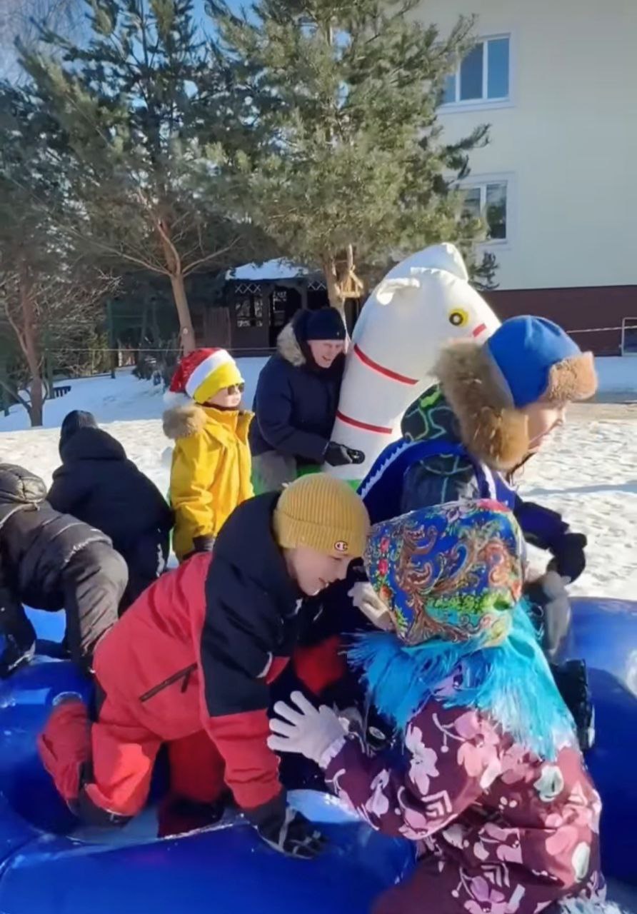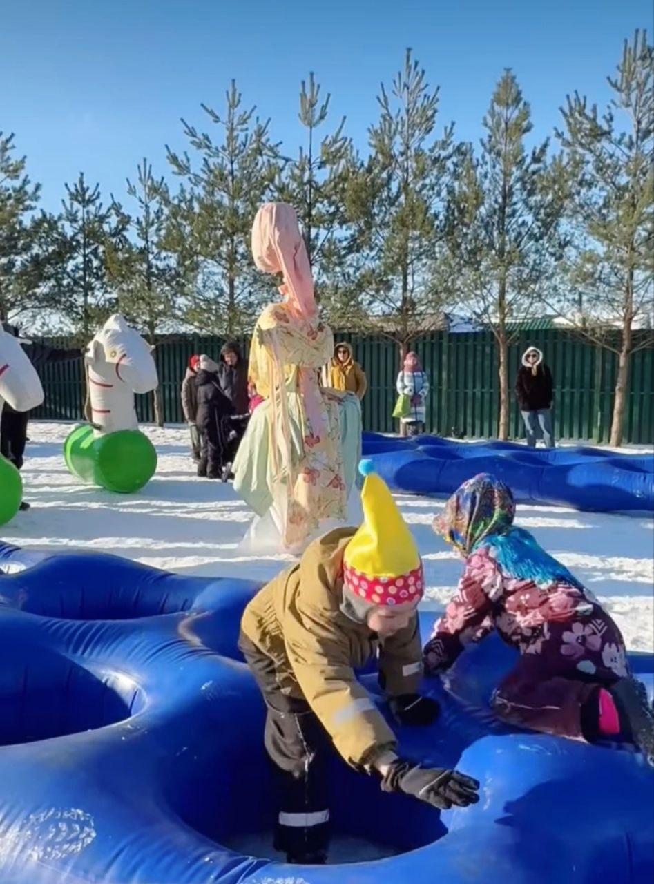Особый восторг вызвали импровизированные санки и "лошадки", на которых дети и родители с удовольствием катались, ощущая себя настоящими героями народных гуляний. А для самых сильных и смелых было организовано захватывающее перетягивание каната – настоящее испытание на прочность и единство!
