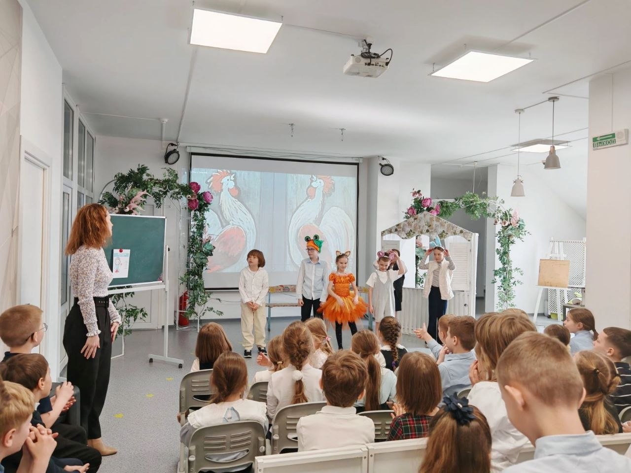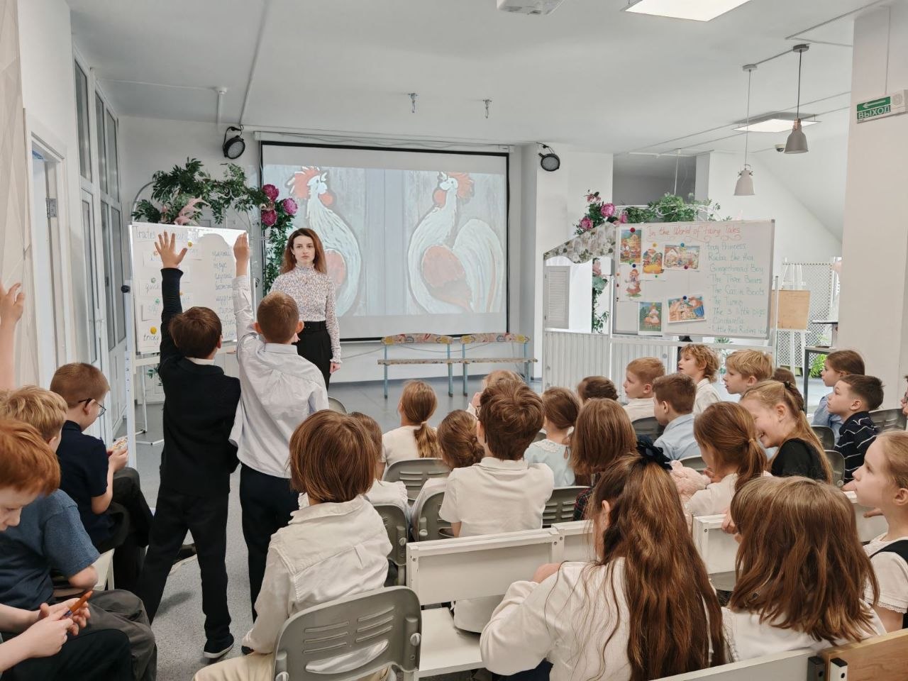Урок был наполнен играми, интерактивными заданиями и даже настоящим мини-спектаклем! Главным событием стало представление русской народной сказки "Теремок" на английском языке под названием "The House in the Wood".